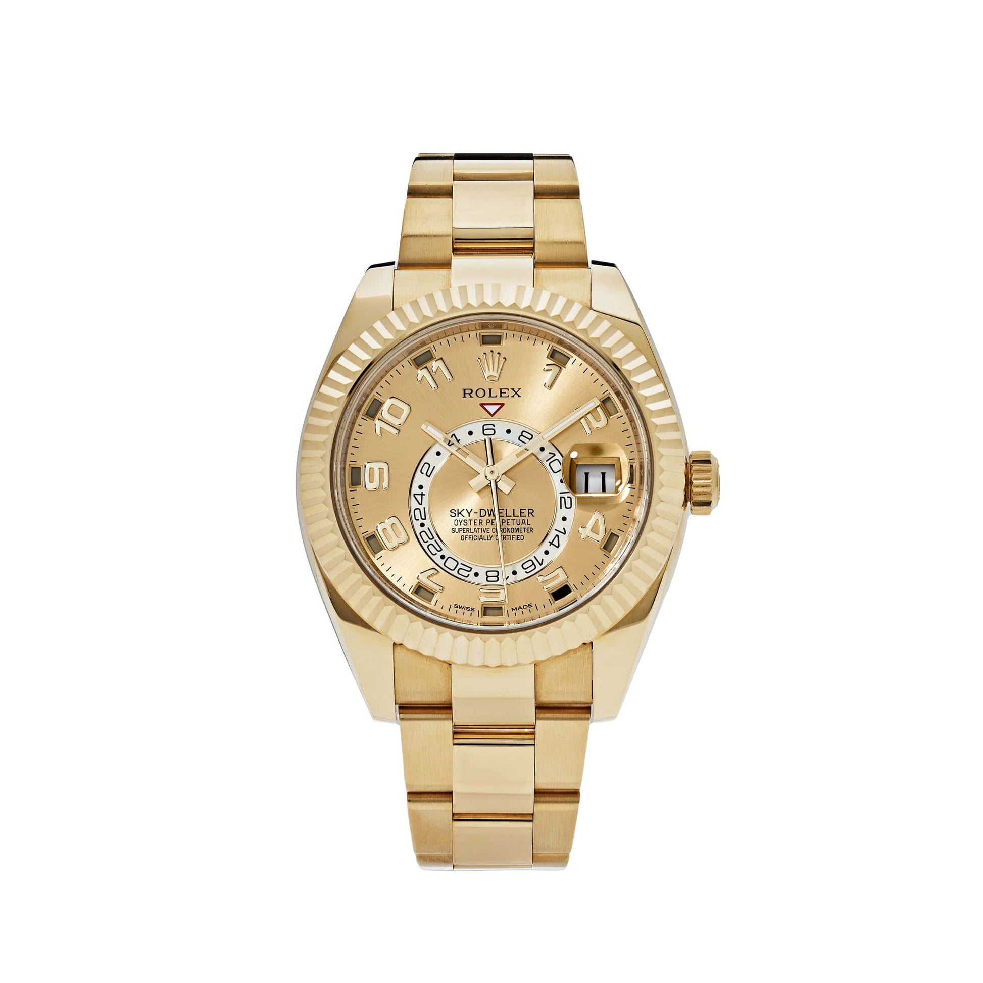 2025 Watch Sky-Dweller 326938 Yellow Gold Champagne Dial Arabic Numerals (2020)